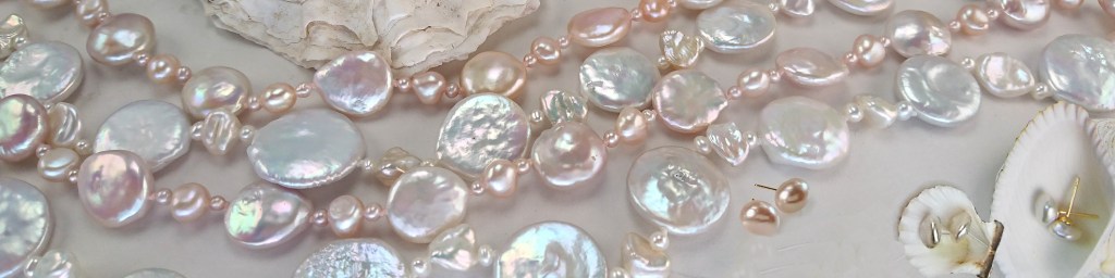 This rounded freshwater pearl nucleus is re-inserted into the mussel, which accepts this pearl bead as its own production and proceeds to coat it with more layers of nacre in an almost spherical shape – very akin to a new potato shape, hence their very unflattering commercial name.